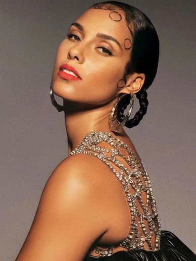 The overall image frames Alicia Keys as a modern R&B goddess—where sound, spirit, motherhood, and elegance converge into a portrait of timeless royalty.